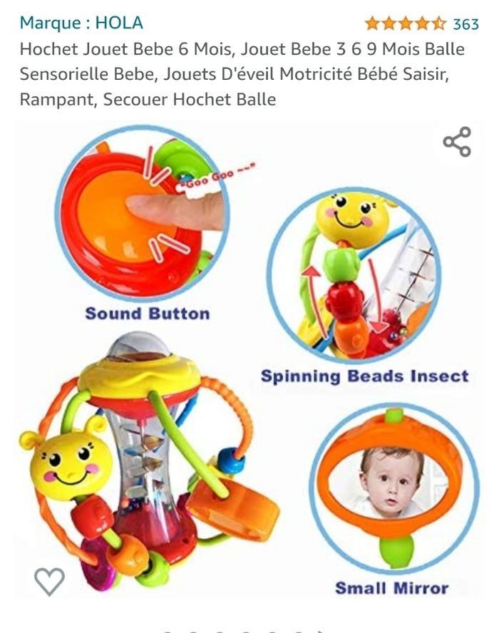 Jouet qui attire la curiosité de l'enfant par ses couleurs, sons, formes et les différentes façons de jouer.