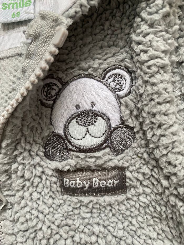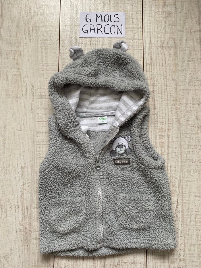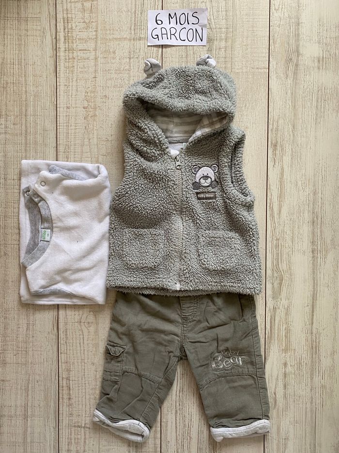 Ensemble veste à capuche sans manches, pull léger et pantalon Motif : ours Matière : laine, coton Âge : 6 mois / 68 cm Utilisation : fermeture éclair Marque : First Smile #tiffanie4439_6mois
