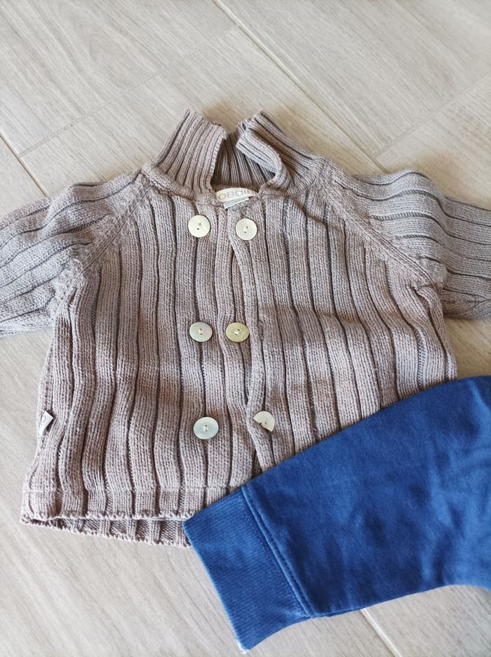Lot veste et gilet de taille 3 mois. Petite imperfection sur le bouton du gilet voir dernière photo. Marque Okaïdi et tissai