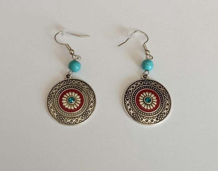 Boucles d'oreilles tibétaine argenté turquoise - photo numéro 1