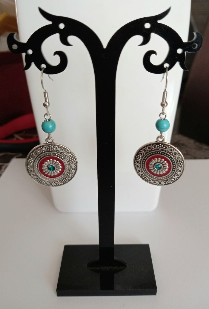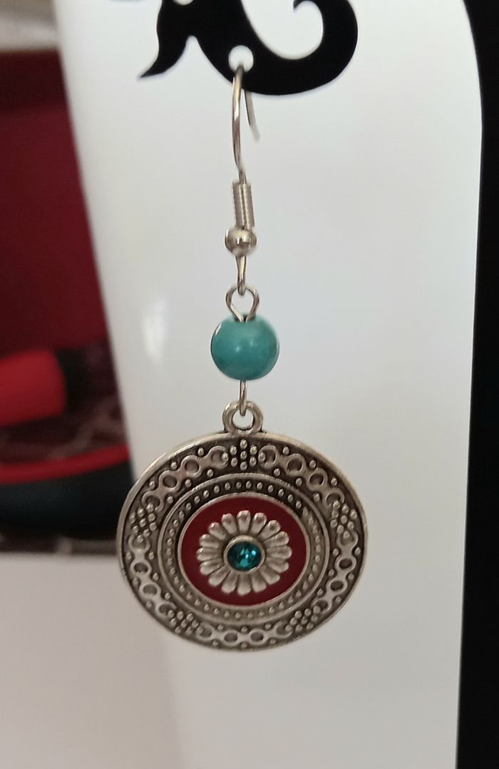 Boucles d'oreilles tibétaine argenté turquoise - photo numéro 3