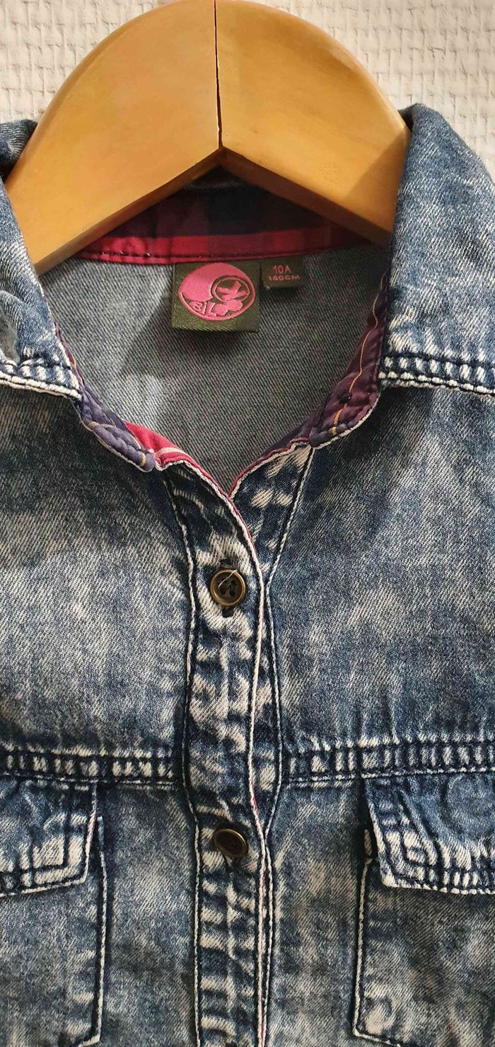 Chemise effet jeans délavé porté mais reste en très bon etat sans défaut #shirleyd10ans