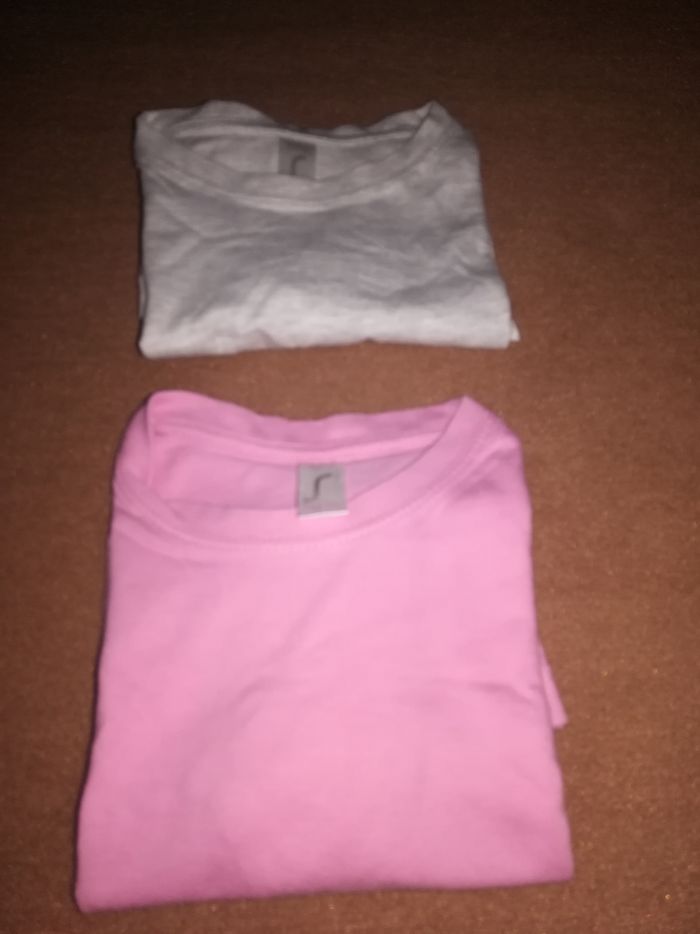 Lot de 2 tee shirt fille 5 ans couleur rose et gris clair, très bon état.