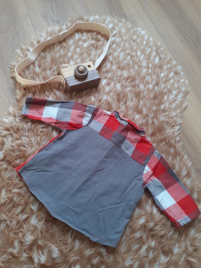 Chemise manches longues grise et rouge. Sucre d'orge taille 3 mois.