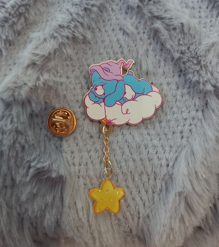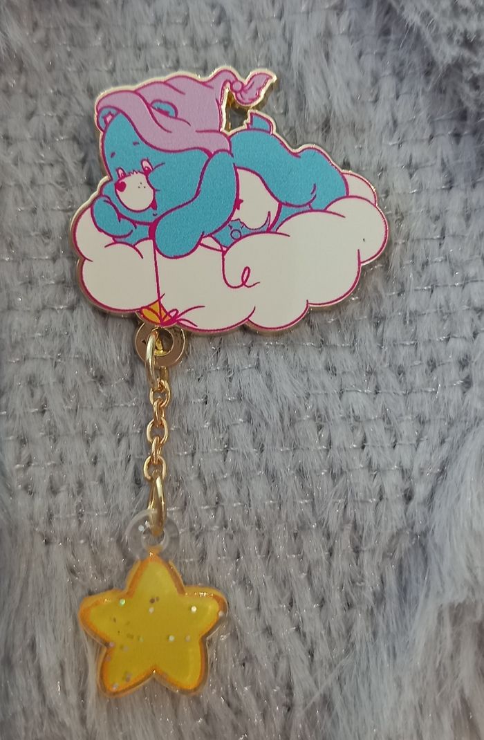 Pin's bisounours bleu sur un nuage avec une étoile reliee par une chainette dorée. Dimensions : 2,3 x 3 cms. Neuf sous blister. N'hésitez pas à regarder mes autres ventes. Envoi rapide et soigné.