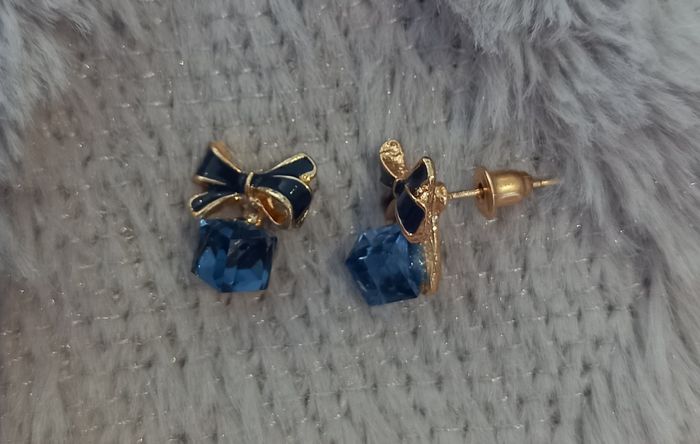Boucles d'oreilles petit cadeau bleu - photo numéro 1