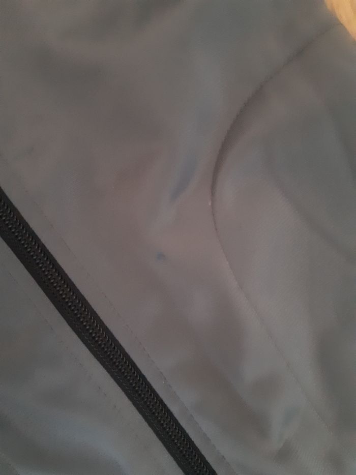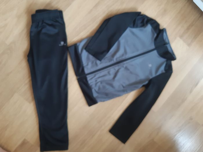 Bonjour, Je vends un survetement domyos noir et gris en 5 ans. Il y a juste une petite tâche d 'encre bleu sur le devant. (Voir photo 2)aucun accro, pas d usure au niveau des genoux. Le gris correspond à la 1ere photo , mon appareil a modifié la couleur du survetement en voulant prendre en photo de prêt la tâche.