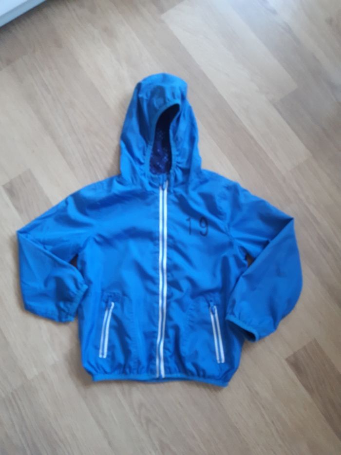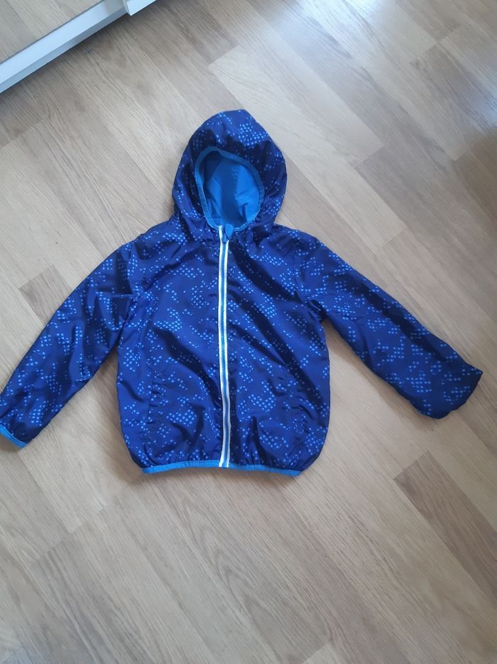 Bonjour, Je vends une veste deperlante réversible de marque tape à l'œil . Une face bleue unie et l'autre face bleue foncée avec un imprimé étoile bleu claire.