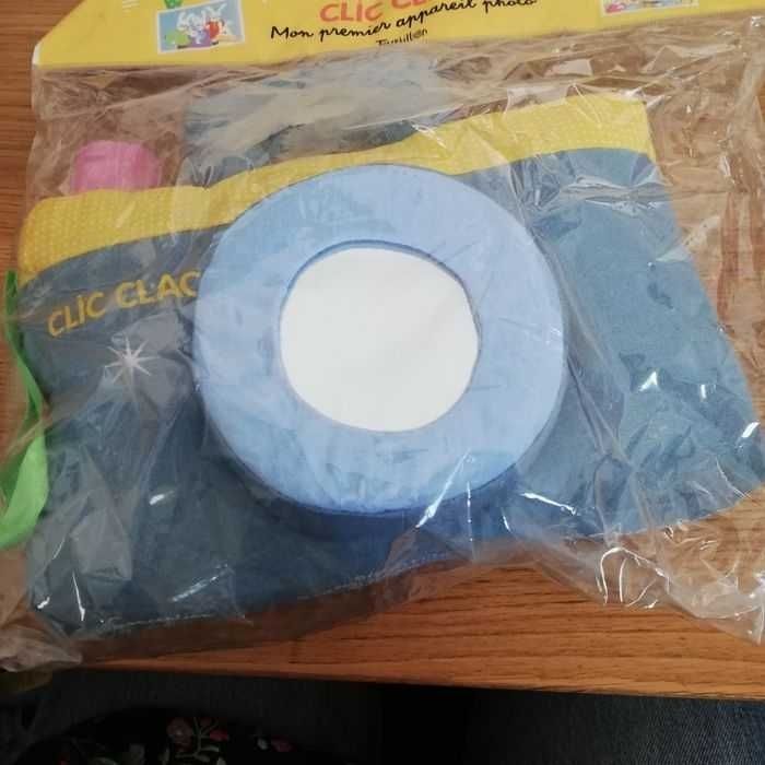 Neuf sous emballage En tissu Livré jouet pour les bébés réalisé par lisa sanchis. Un appareil photo en tissu avec plusieurs petits gadgets. L'objectif est un miroir. A l'arrière on peut découvrir quelques photos d'une famille de lapins