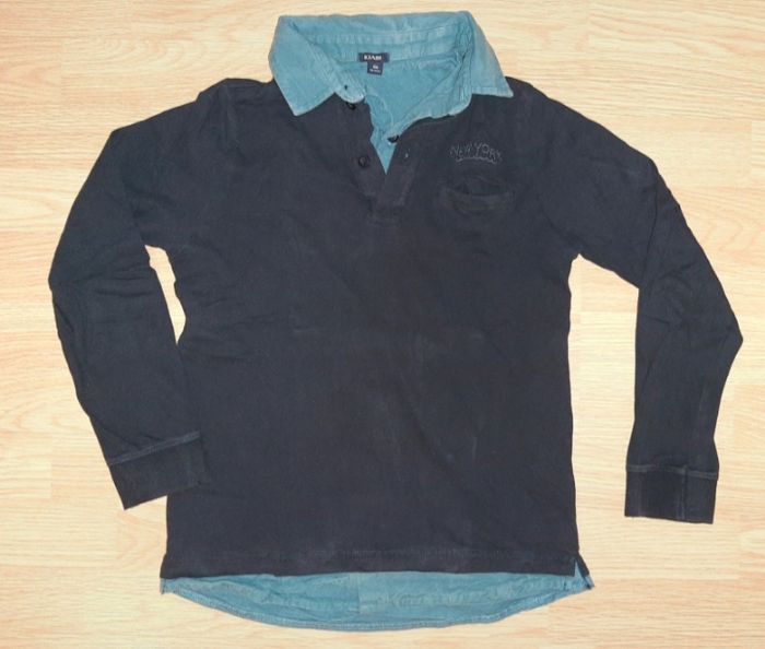 Vends un haut polo à manches longues de couleur bleu marine avec doublure chemise intégrée en 10 ans 2,5 E
