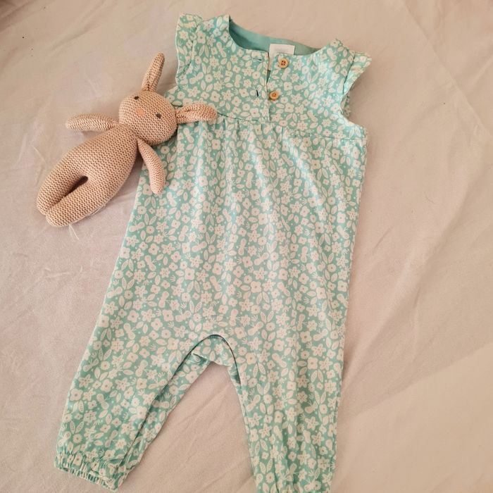 Petite combinaison bleu turquoise à fleur Excellent état car très peu porté ! Aucune tâche ! Ouverture à l'entrejambe Taille 6 mois 68cm