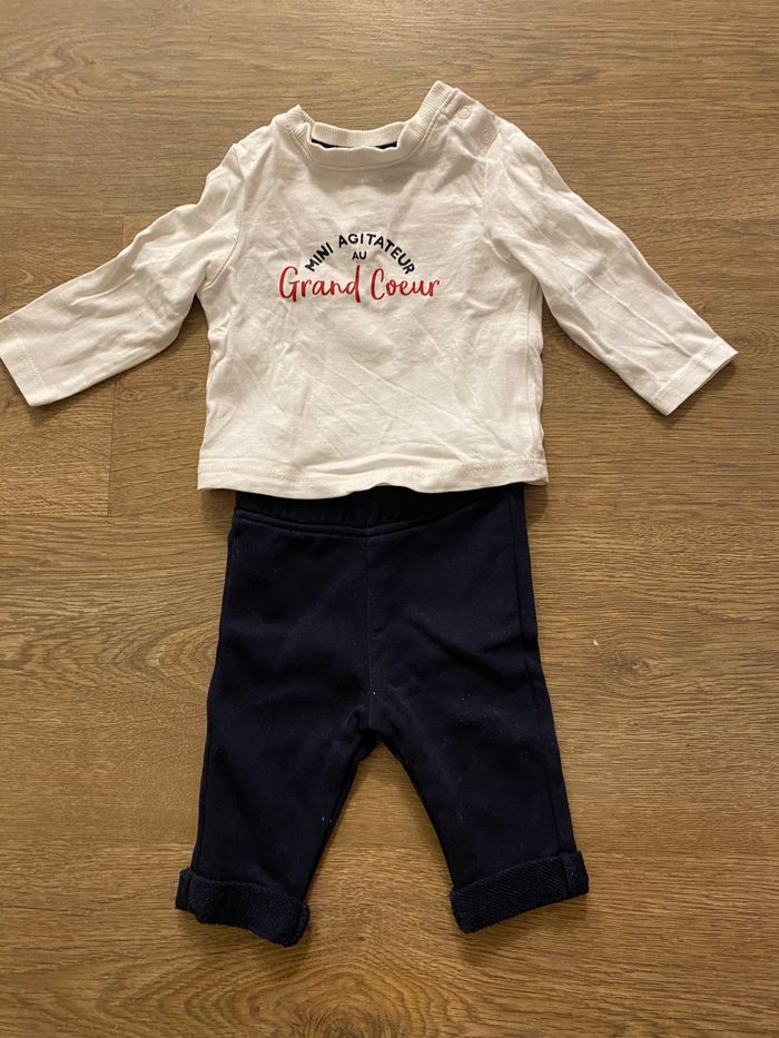 Ensemble pantalon et t shirt manches longues, de marque kiabi et de taille 1 mois, très peu porté.