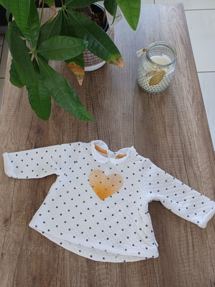 Très jolie petit pull de la marque okaidi . Parfait pour la demi saison Taille 6 mois