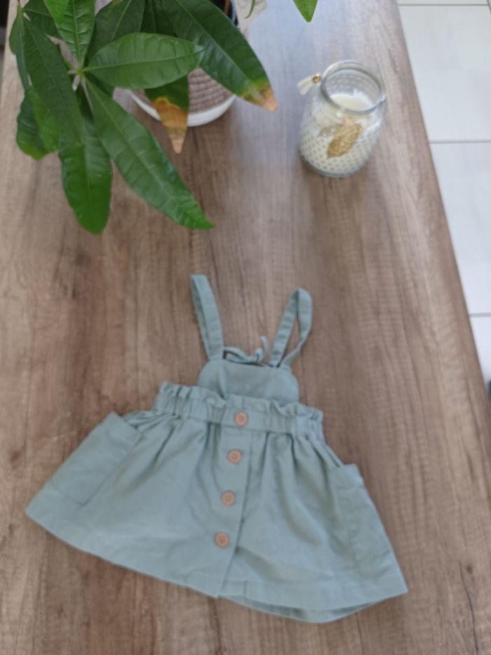 Très jolie robe tablier vert d'eau de la marque Verbaudet. Taille 6 mois .
