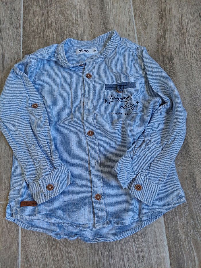 Chemise manches longues avec manches qui peuvent se raccourcir. Inscription "Toujours chic comme papa". Gémo, 24 mois #24moisaurelilou34 #2ansaurelilou34