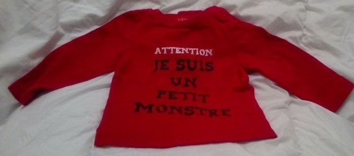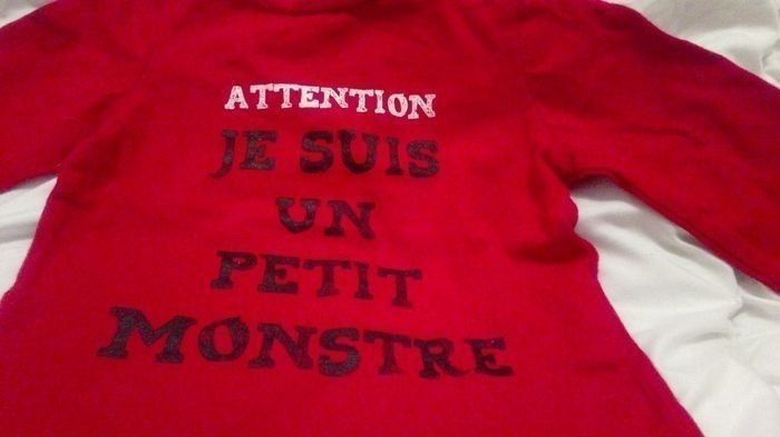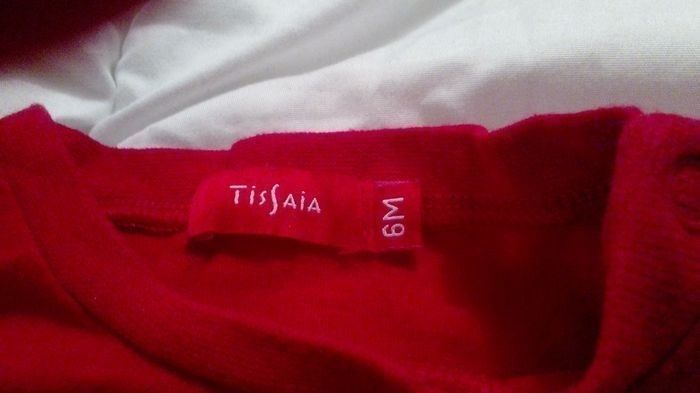 Pull longues manches en très bonne état. L'écriture n'est pas effacer cest un effet Taille 6 mois Marque tissaia Mis sur plusieurs sites de ventes et groupes de ventes