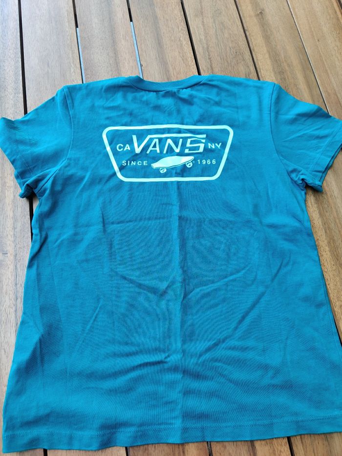 Tee shirt Vans Bleu plutôt turquoise Très bon état Taille S Largeur épaules 35 cm Hauteur sous bras 35 cm
