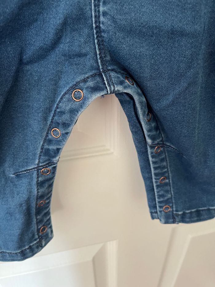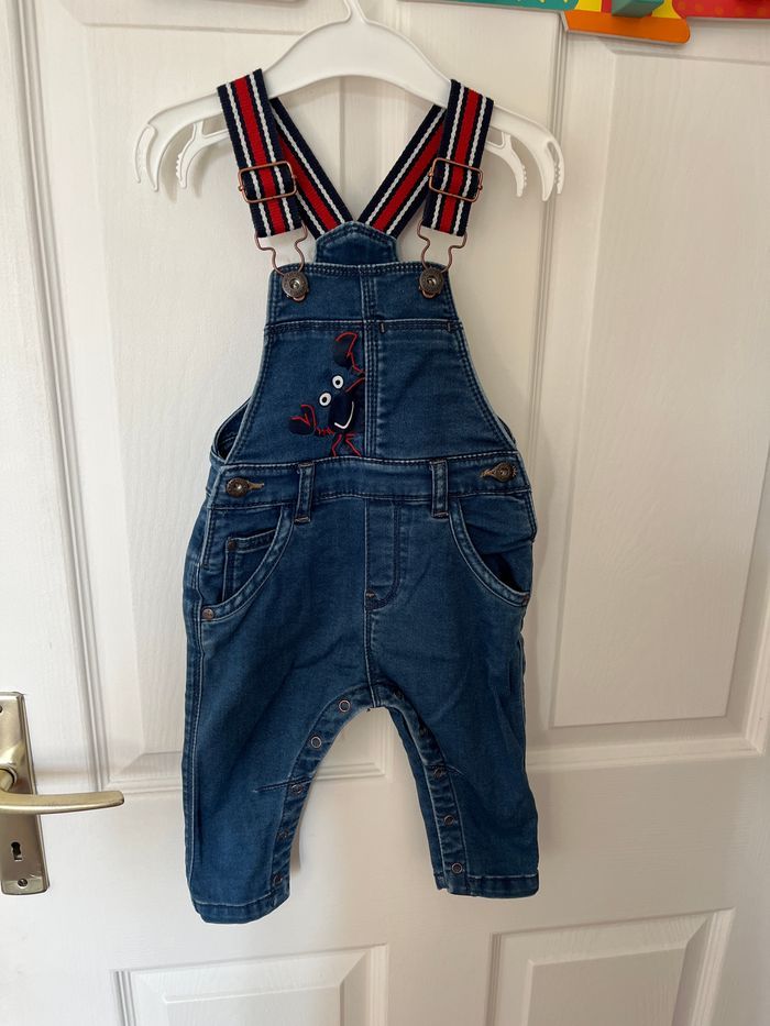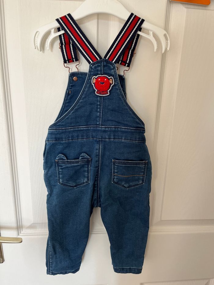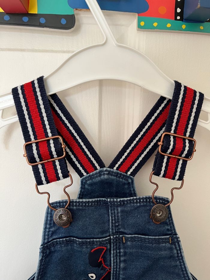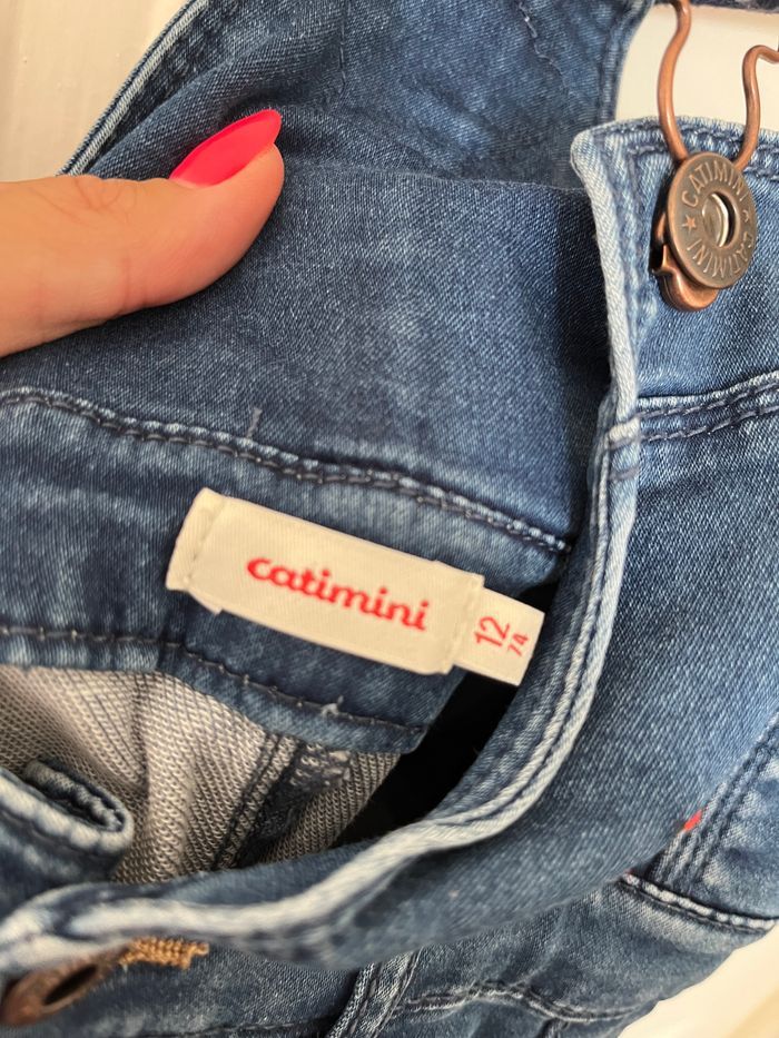 Salopette en jean avec bretelle à rayures Marque Catimini Très bon état Taille 12 mois