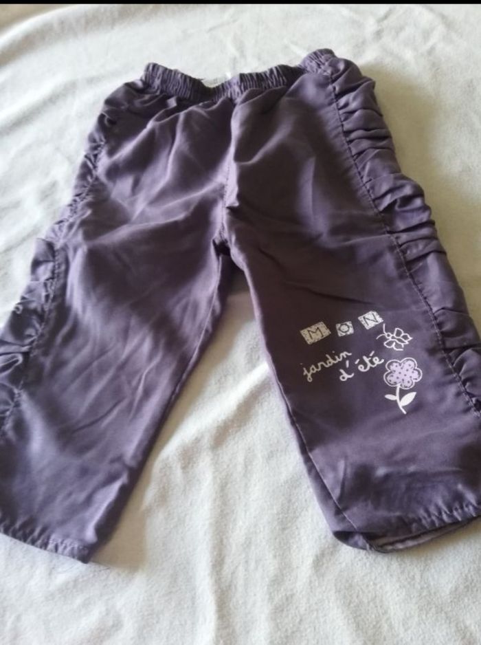 Pantalon fille 12 mois couleur violet 100%polyester,doublure 100 %coton très bon état.
