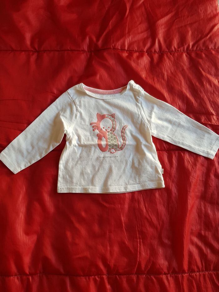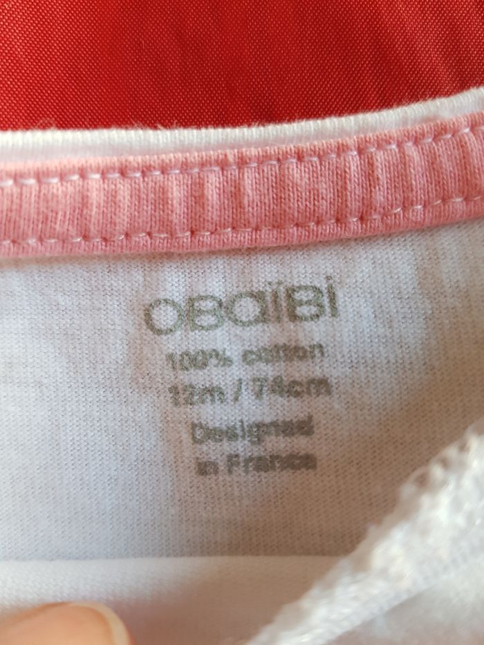Tee-shirt à manches longues blanc de marque Obaibi taille 12 mois 74 cm comme neuf
