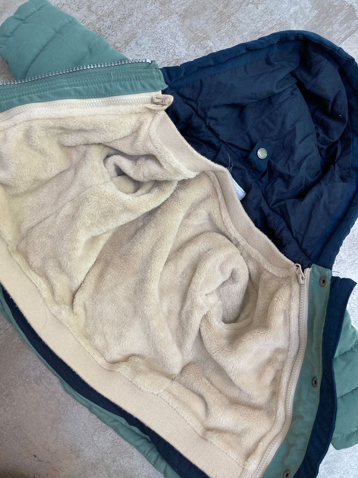 Manteau hiver 6 mois Vertbaudet 2 en 1 Manteau chaud avec doublure amovible intégré. La doublure une fois enlevée peut faire office de gilet chaud. Manteau Vertbaudet acheté 44€99 l'an dernier mais comme beaucoup de vêtements en 6 mois nous avions mal anticipé la taille ce qui fait que notre fils ne l'a jamais porté
