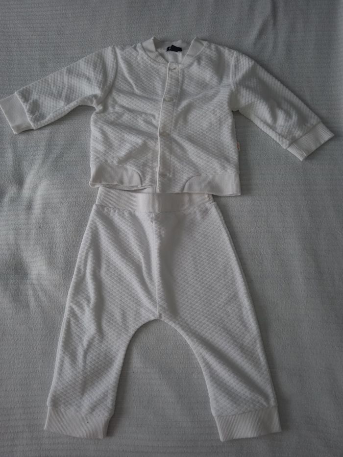 Ensemble pantalon+gilet. Matière souple et agréable. Taille 9 mois, marque Kiabi. En super état car porté une ou deux fois.