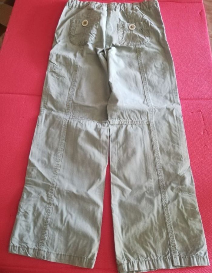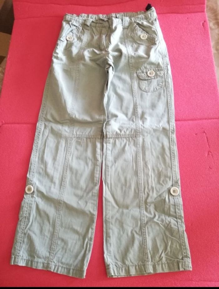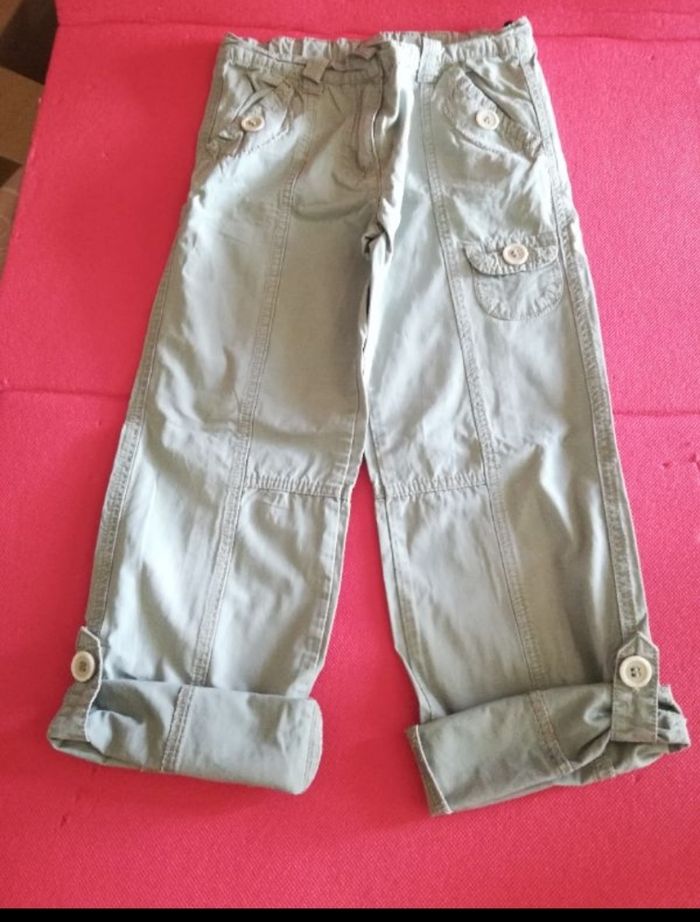 Pantalon,court fille 8 ans couleur Vert pâle, très bon état marque TAPE A L'OEIL. Il peut être réglable en pantacourts ou rester en pantalon (voir photos)