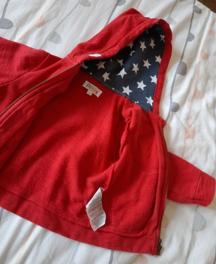 ‼️ Très bon état général Gilet rouge (plutôt plus foncé que sur la photo) à capuche avec motifs ⭐️ blanches sur fond bleu (intérieur capuche + dos des manches)
