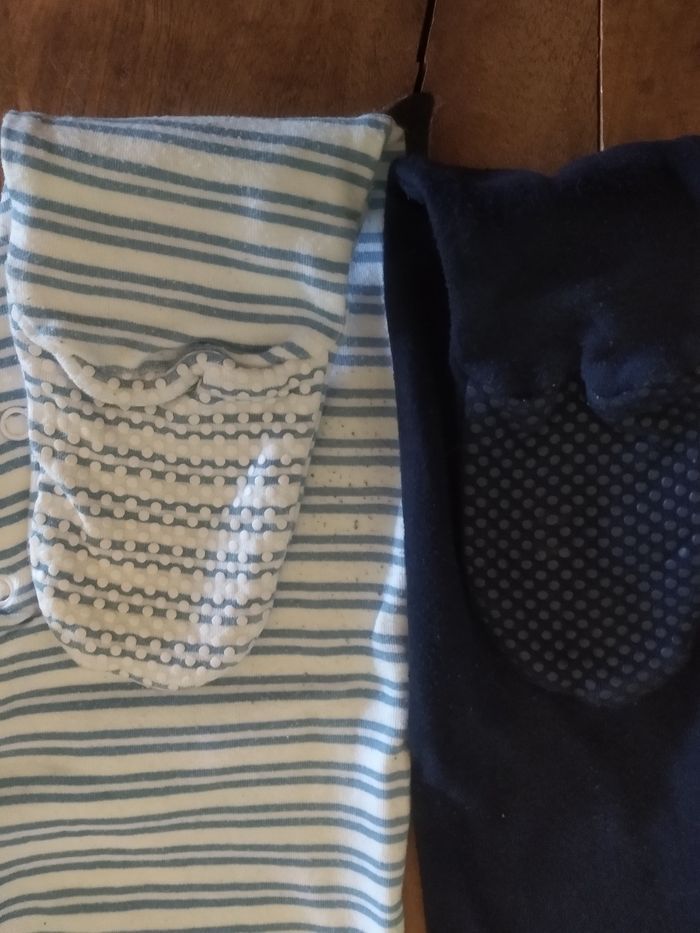 2 pyjamas une pièce. Taille 12 mois/86. Pieds antidérapants. Bon état. Bac 1