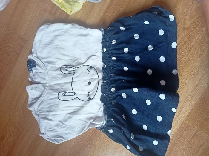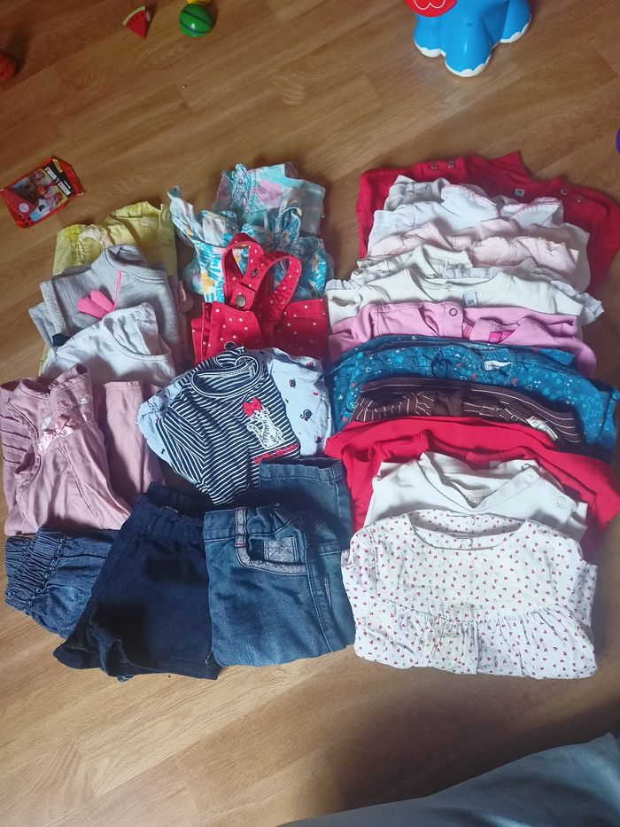 Lot 22 habits - 10 hauts manches longues - 2 t-shirts -2 shorts - 5 robes - 1 jeans - 1 combis short + J'offre une chemise blanche a coeur qui est un peut tâché jaune .