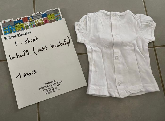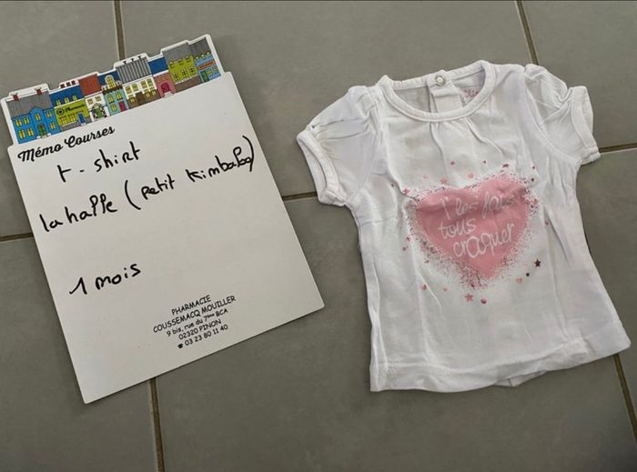 T shirt ma chère courte fille de taille 1 mois et de marque petit kimbaloo en très bon état Maison non fumeur sans animaux