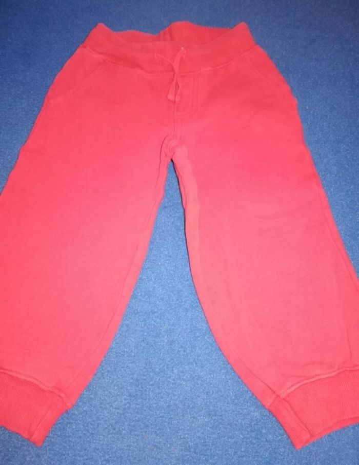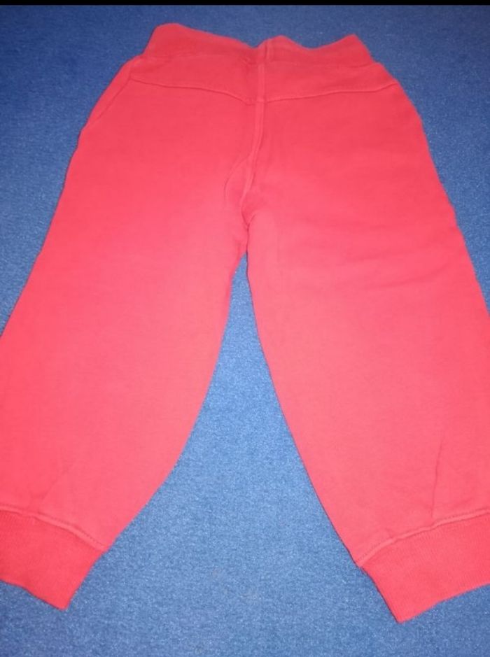Pantalon jogging mixte 2/3 ans couleur rouge avec fils pour ajuster la ceinture, très bon état marque H&M.