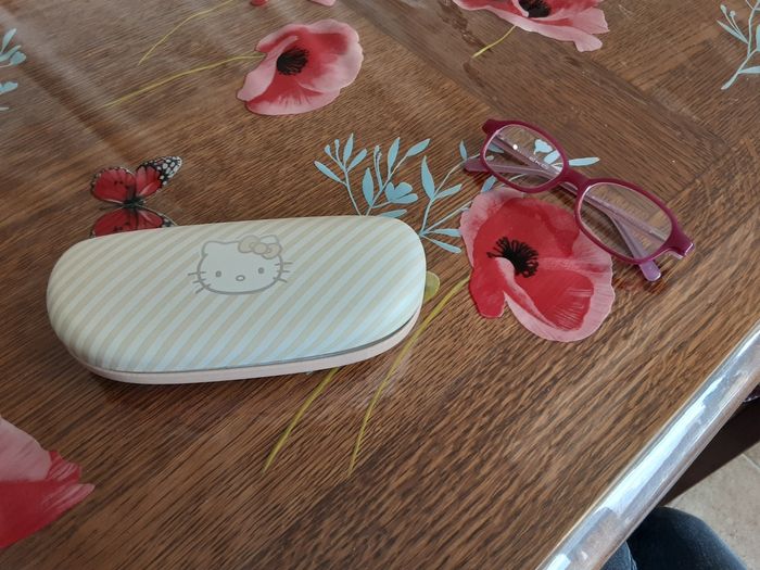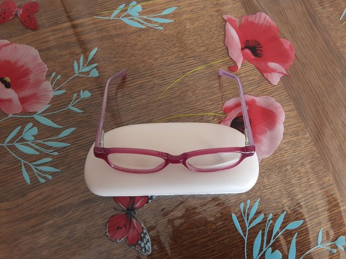 Monture lunette enfant fille , il y a encore les verres dessus à faire enlever chez l’opticien pour mettre les nouveaux verres à votre vue .. rose ..quelques petites traces d’usures sur les bout des branches ...ma fille les avaient mit de 3 ans jusqu’à 4 ans pour donner une idée..