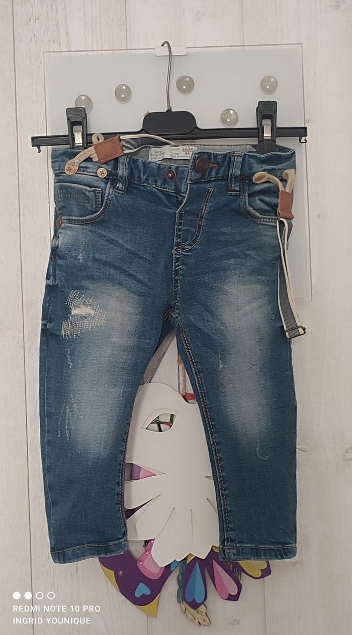 Jeans bleu avec bretelles Zara taille 12-18 mois