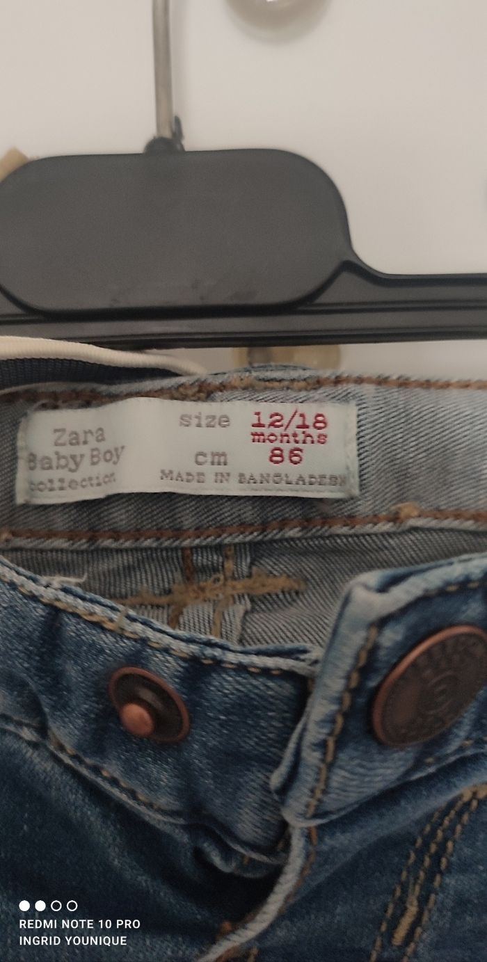 Jeans bleu avec bretelles Zara taille 12-18 mois - photo numéro 1