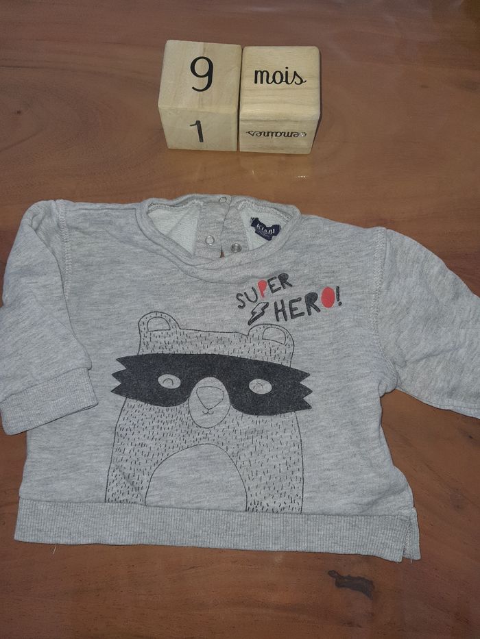 Pull sweat kiabi "super héros" Taille 9 mois Bon état Couleur gris 5
