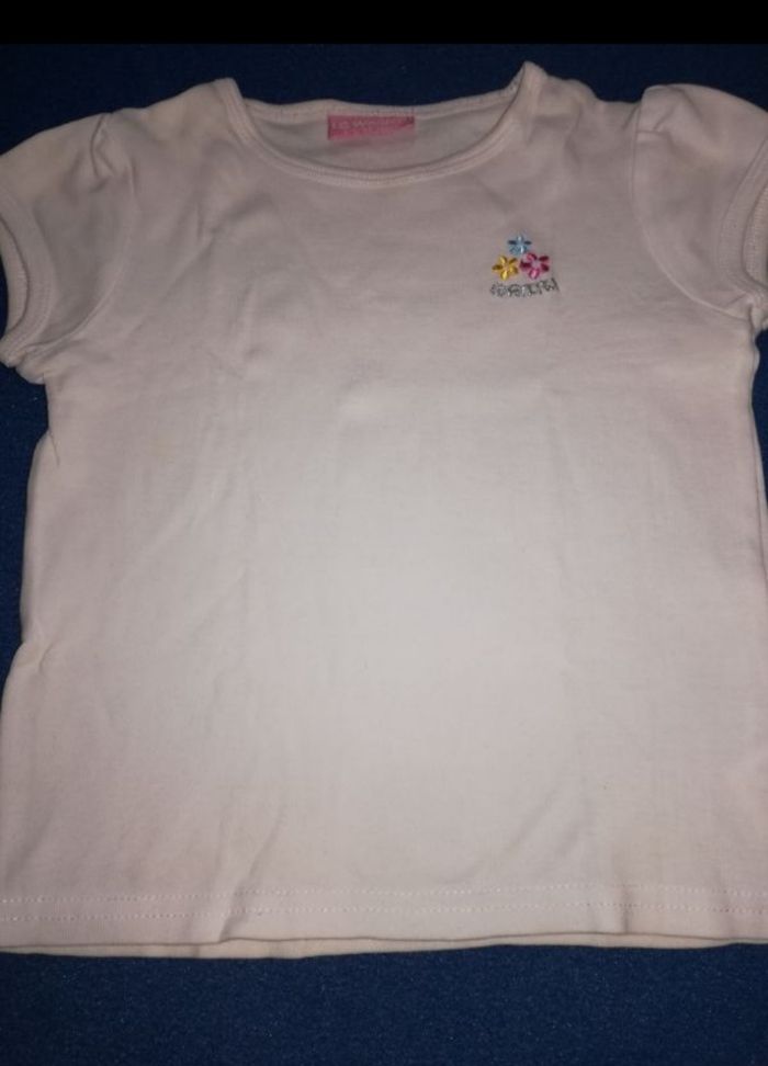 Tee shirt manches courtes fille 3/4 ans couleur blanc avec broderie en fleur très bon état.