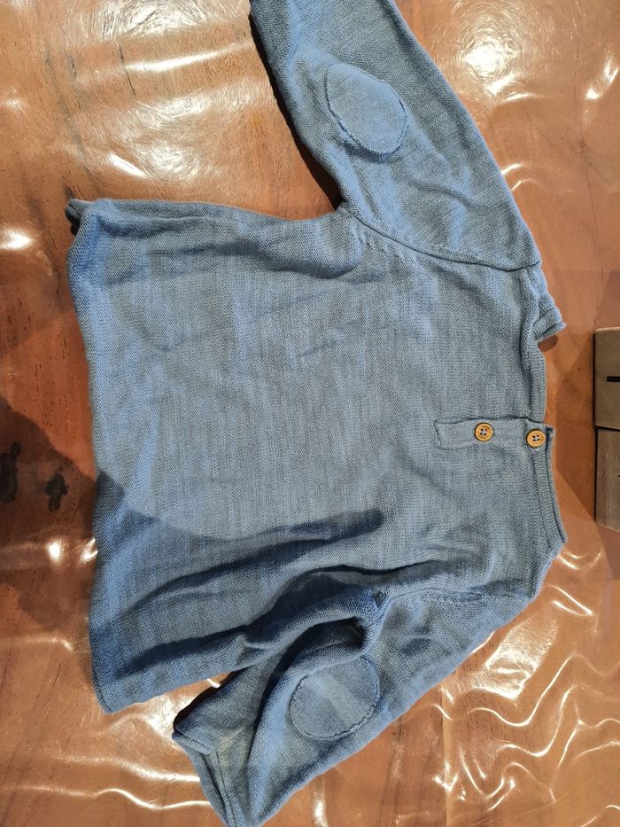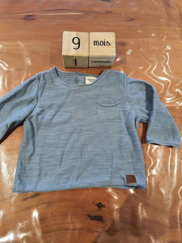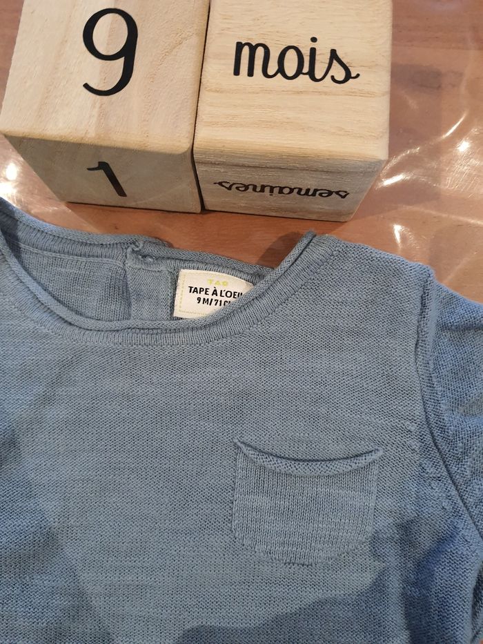 Pull fin bleu clair avec courtière et une poche Taille 9 mois Marque tape a l'œil Très bon état