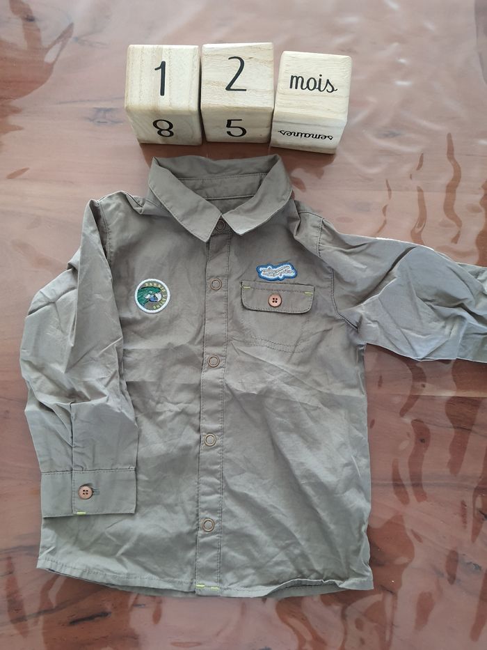 Chemise à pressions kaki 12 mois Marque grain de blé Très bon état