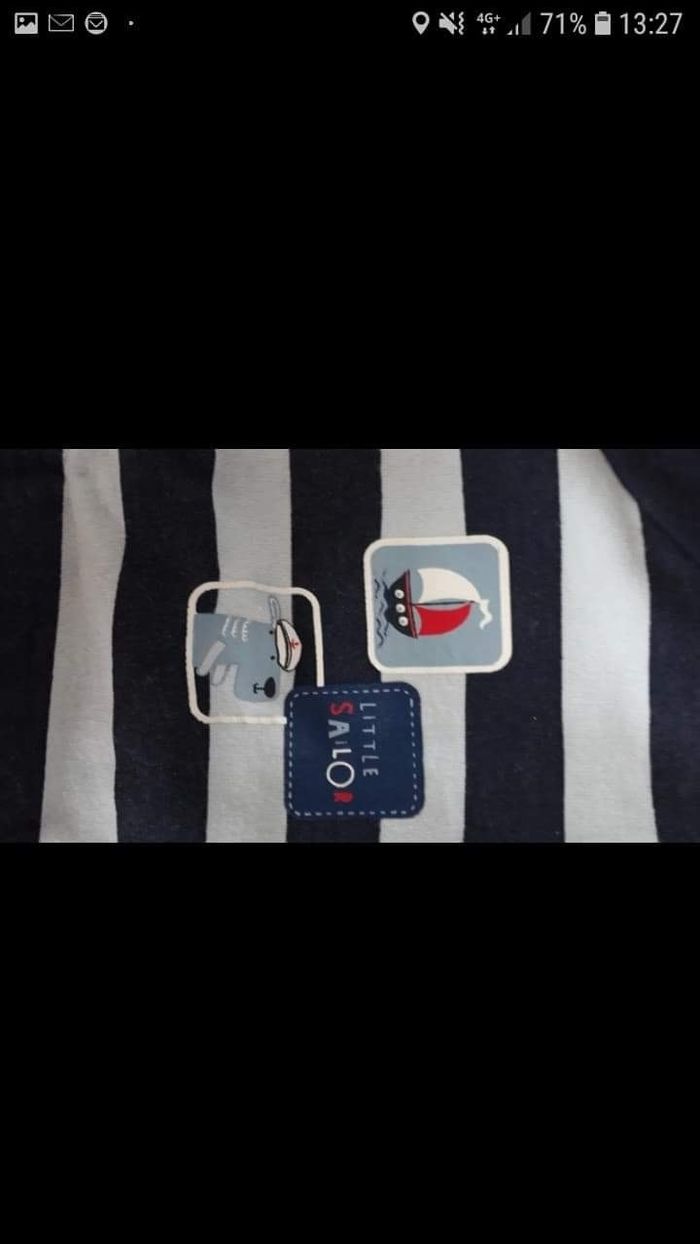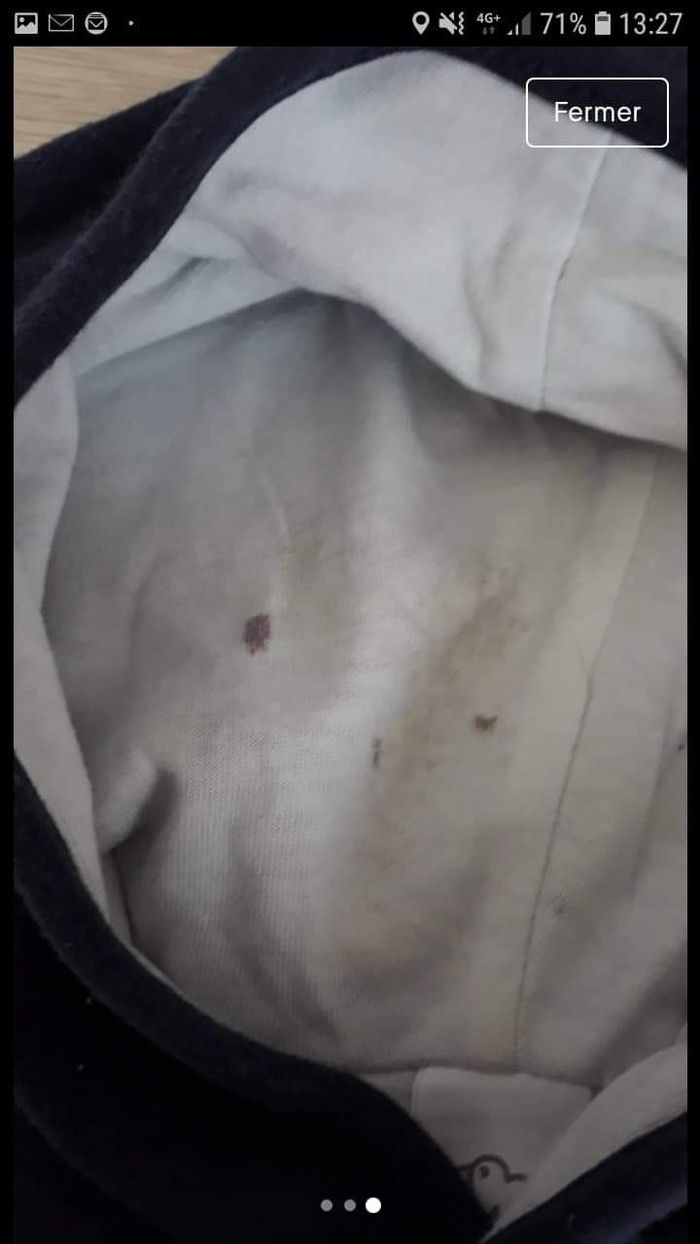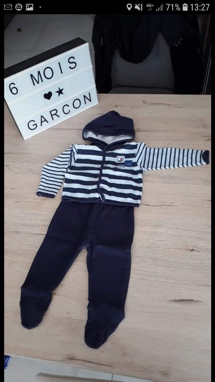 Pyjama 2 pièces Pantalon avec pieds Veste rayée à capuche. Tâches à l'intérieur de la capuche (voir photo)
