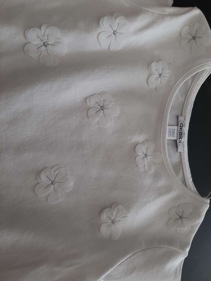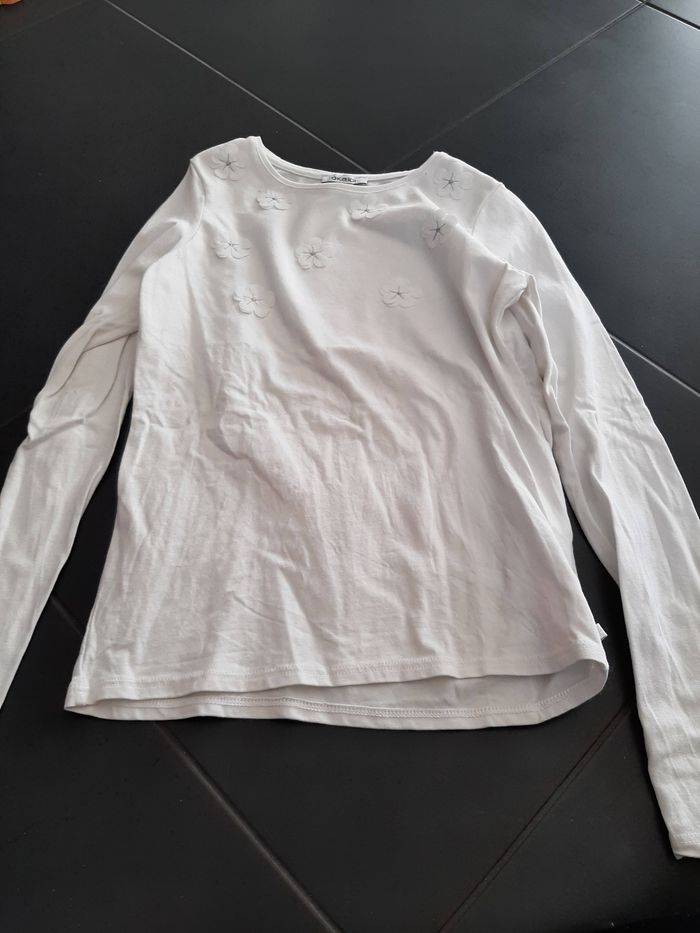 T-shirt blanc manches longues 12 ans okaidi Avec des fleurs Très peu porté