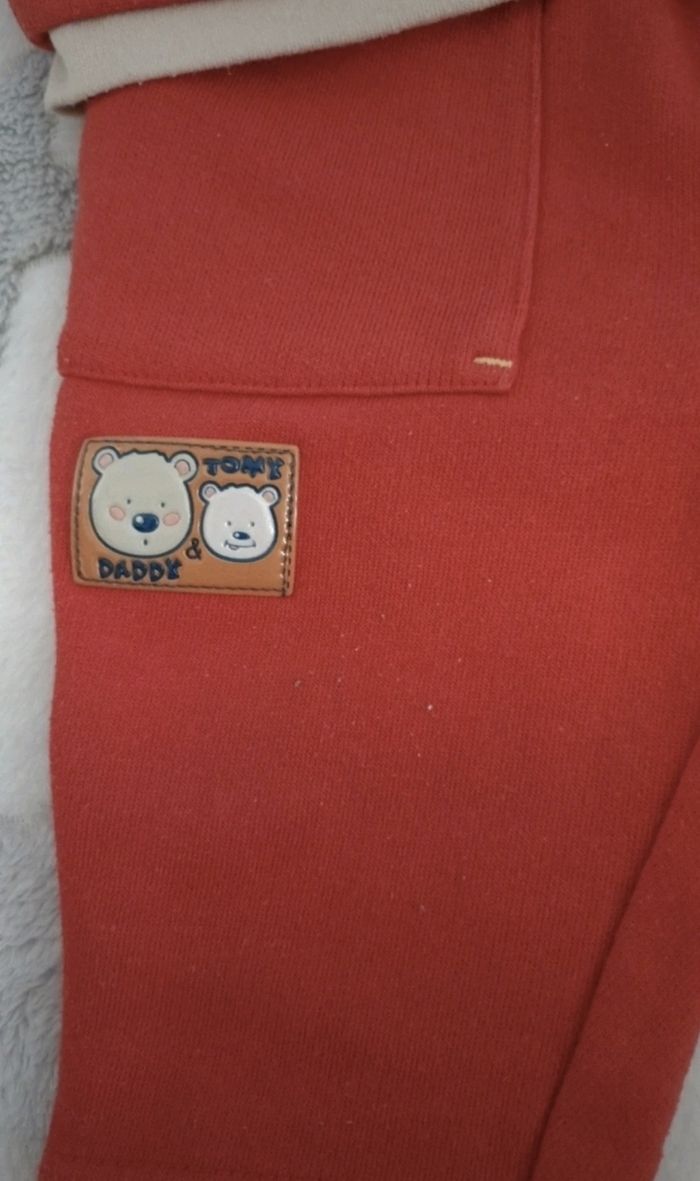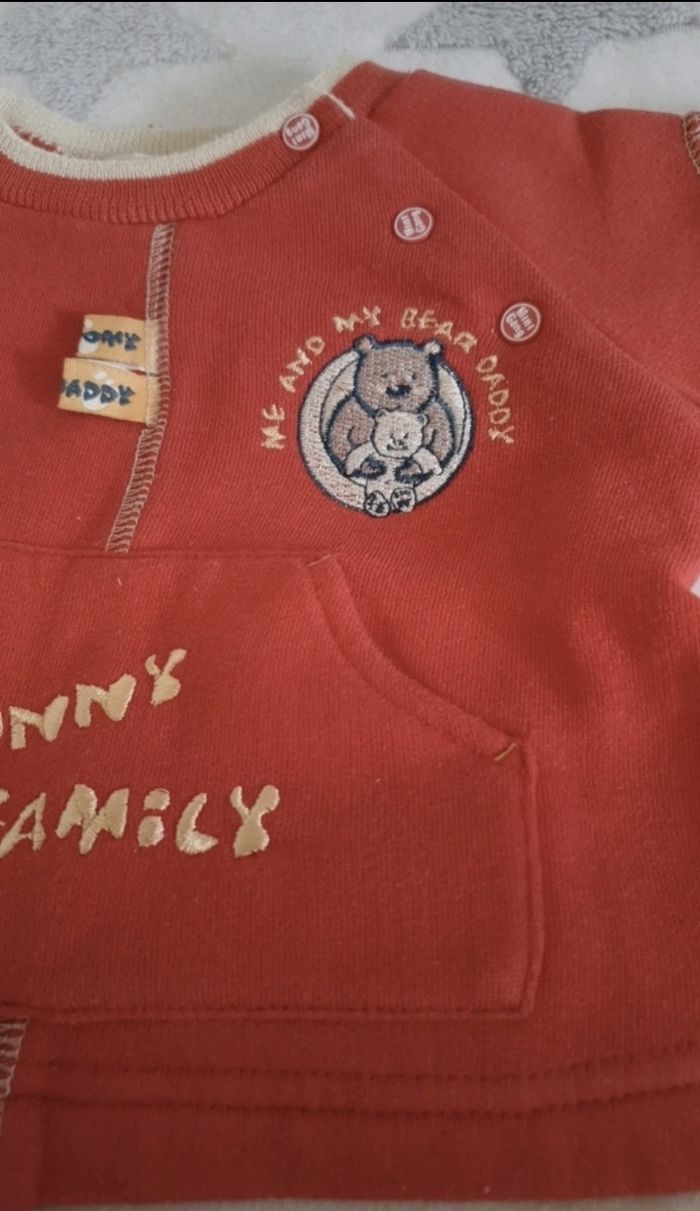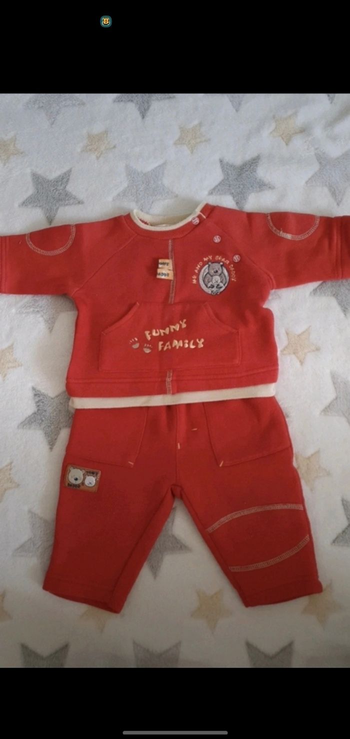 Ensemble comprenant un sweat et un jogging pour bébé garçon taille 3 mois rouge et beige. 65% polyestere 35%coton