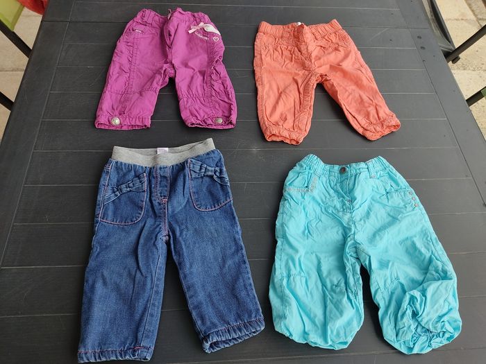 4 pantalons doublés, pour l'hiver. ✅ Pantalon violet épais doublé. Pantalon avec une pression, et taille réglable. Taille 6 mois ✅ Un pantalon tex, taille élastique. Doublé polaire. Taille 6 mois ✅ Pantalon orange kitchoun (kiabi). Pressions engtre les jambes pour faciliter le change. Taille non réglable mais possibilité de mettre une ceinture. Taille 6 mois ✅ Pantalon turquoise, orchestra. Taille non réglable mais possibilité de mettre une ceinture. Taille 9 mois #ticia886moisfille #pantalondhiver6mois #pantalondoublé #pantalonbebefille #pantalontaillereglable6mois #pantalonviolet #pantalonchaud #pantalonepais #pantalonhiver #pantalon6moisfille #lot6moisfille #pantalonorchestra #pantalontaillereglable #pantalonpolaire