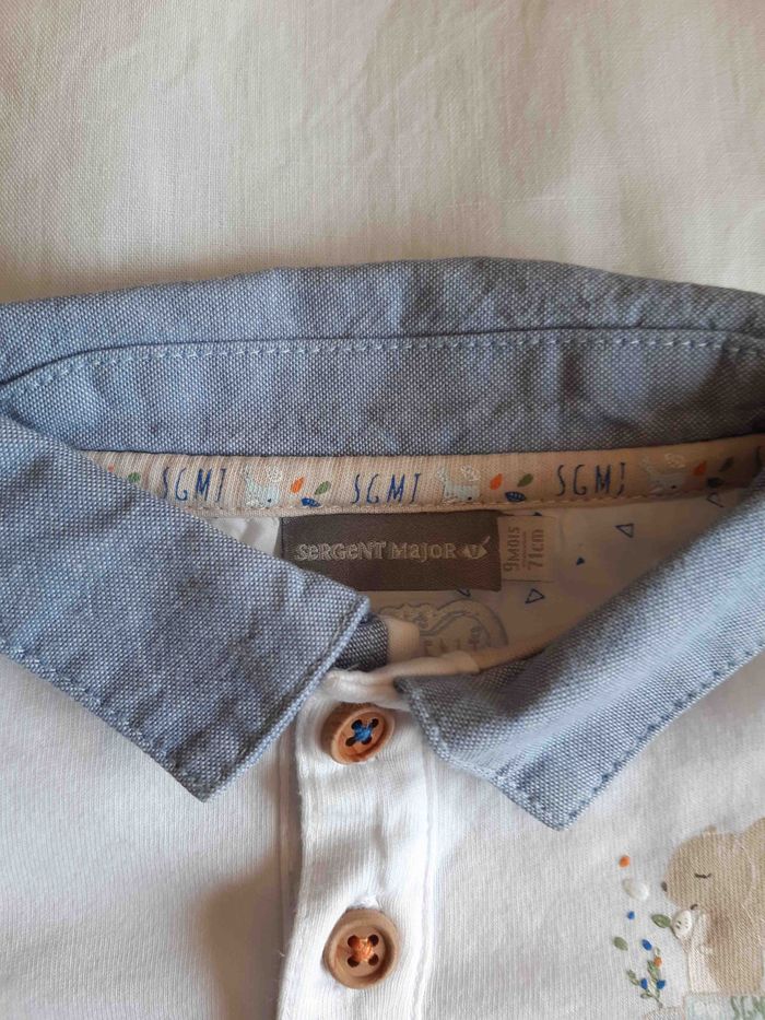 A vendre t-shirt manches courtes taille 9 mois marque Sergent-major couleur blanc parfait état