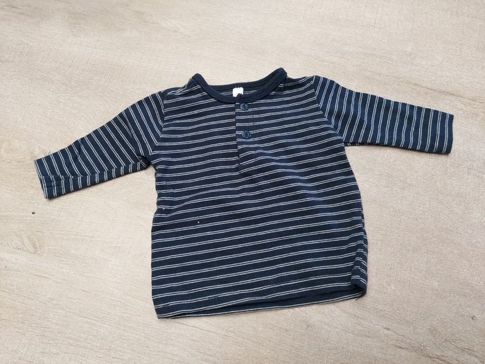 Tee shirt manche longue t 50cm Couleur blanc bleu marine Etat.impeccable