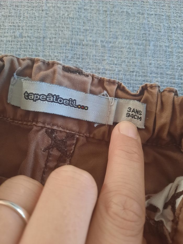 Short marron 2 devant 2 poches sur les côtés Taille ajustable Taille 3 ans