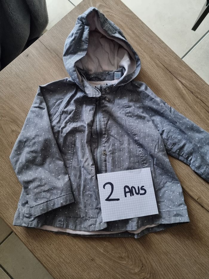 Veste mi saison avec caoutchouc et fermeture Légèrement polaire à l'intérieur Très bon état Fille 2 ans