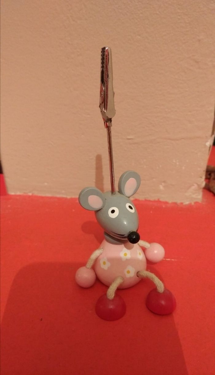 Sourie en bois, pieds pendants