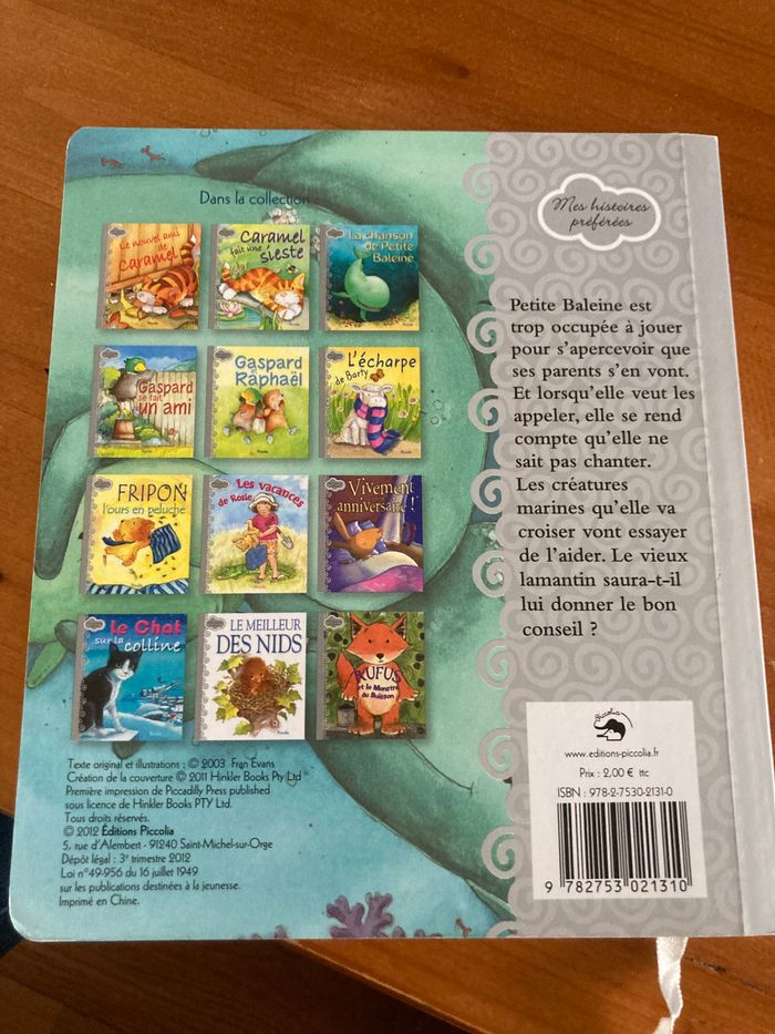 Livre enfant Piccolia La chanson de Petite baleine