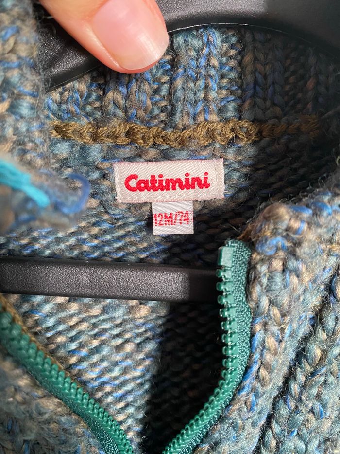 Pull chaud catimini, taille 12 mois. Une fibre de tiré sur le devant, voir photo.